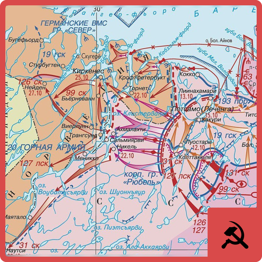 Нейден и Наутси были последними пунктами, до которых дошли основные части советских войск. Петсамо-Киркенесская операция была в целом завершена. Момент Закрепление советских войск на рубеже севернее Нейдена и юго-западнее Наутси Preview