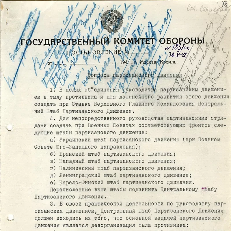 Создан в целях объединения руководства партизанским движением в тылу противника и для дальнейшего развития этого движения. Образован Постановлением ГКО СССР № ГОКО-1837сс от 30 мая 1942 года. В целях реализации этого постановления Наркомат обороны СССР издал Приказ № 00125 от 16 июня 1942 года «О формировании Главного и региональных штабов партизанского движения».